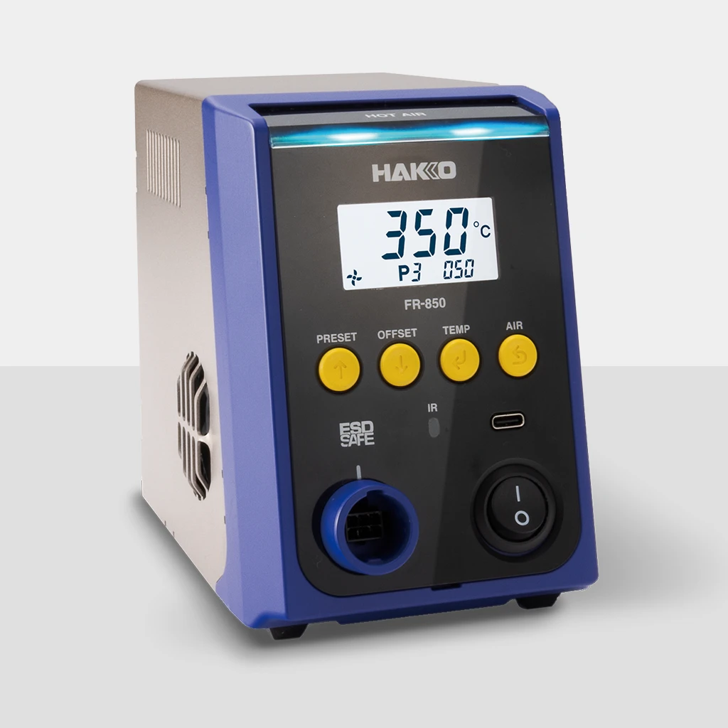 Hakko Reworkstationen zeichnen sich durch einen leistungsstarken Heißluftstrom und hohe Heizleistung aus und sind daher ideal für Leiterplatten mit hohem Wärmebedarf. Durch die langjährige Erfahrung und dauernde Weiterentwicklung der notwendigen Prozesse kann HAKKO eine breite Palette an Werkzeugen und Düsen anbieten, die für jede Anwendung und für jedes Bauteil passt. Für ungewöhnliche Bauteilgrößen oder Bauteilformen bietet HAKKO die Fertigung individueller Sonderdüsen an.